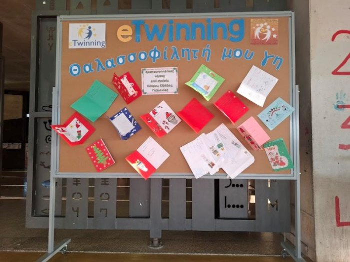 Πινακίδα με χριστουγεννιάτικες κάρτες από τα συνεργαζόμενα σχολεία