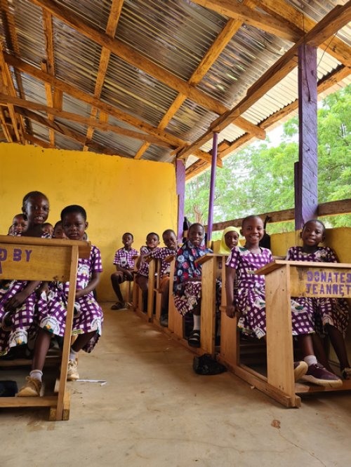Σε συνεργασία με το 3ο Δημοτικό Σχολείο Υψώνα, ανακαινίσαμε εξολοκλήρου το Sunrise Preparatory School στο χωριό Adawso της Γκάνας — από το νηπιαγωγείο μέχρι και την 6η τάξη!