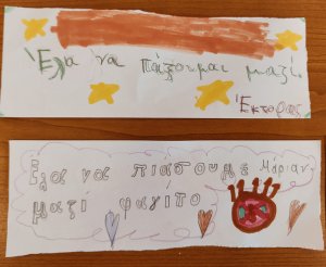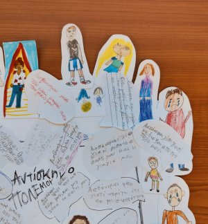 Μικρός Οδυσσέας - Little Odysseus Πρόταση: Τρία σχολεία γνώρισαν "Το κίτρινο του Ηλιοτρόπιου" των Ζουλιέτ Άνταμ και Μορίν Πουανιονέκ από τις Εκδόσεις Πατάκη-Patakis Publishers . Στο ένα σχολείο, (Δ' τάξεις, ΚΗ' Κάτω Πολεμιδιών), το είδαμε ως κείμενο. Πόσο διαφορετικός μπορείς να είσαι; Πώς αντιλαμβάνεσαι τον κόσμο γύρω σου; Είναι αναγκαίο να μοιάζεις; Μπορείς να μοιράζεσαι και να παραμένεις διαφορετικός; Τι προσφέρει στον κόσμο η διαφορετικότητά σου; Μπορούμε να εμπνευστούμε και να φτιάξουμε μία καρτ ποστάλ ψυχικής ενθάρρυνσης συνδέοντας την δική μας κατανόηση κειμένου με το βιβλίο "Να είσαι ο εαυτός σου;" Στο δεύτερο σχολείο ( Γ' τάξεις, Α' Δημοτικό Σχολείο Κολοσσίου), μετατρέπουμε το βιβλίο σε "Ιστορία σε καρτ ποστάλ" δίνοντας έμφαση στα στάδια συνειδητοποίησης της ηρωίδας μας, της Ηλιάνας αναζητώντας ταυτόχρονα φράσεις που θα μας προέτρεπαν να αγκαλιάσουμε τη διαφορετικότητά μας και θα μας οδηγούσαν παράλληλα στην κατανόηση και την ενσυναίσθηση. Στο τρίτο σχολείο ( Β' τάξη, Γ' δημοτικό σχολείο Υψωνα) η μαγική ιστορία απλώθηκε σαν πέπλο παραμυθένιο, πάνω από τα κεφαλάκια που αγωνιούσαν για την έκβαση της ιστορίας μας. Εδώ δημιουργήσαμε " μικρές συμμορίες χρωμάτων" που άλλοτε μοιραζόταν την αγάπη τους για ένα χρώμα κι άλλοτε συνδύαζαν τη διαφορετικότητά τους με θαυμαστούς χρωματισμούς. " Κράτα το χρώμα σου" λοιπόν όσο κι αν μεγαλώσεις! Συμβουλή προς τους γονείς: Βιβλίο μαγικό που πρέπει να υπάρχει στη Βιβλιοθήκη σας!