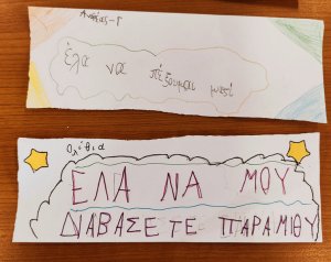 "Έχεις λίγο χρόνο;"....για να απολαύσεις τις μικρές χαρές της ζωής; Για να τον δωρίσεις σ' εκείνους που αγαπάς; Για να μοιραστείς σκέψεις, συναισθήματα και όνειρα; Σ' ευχαριστούμε Sophia Dartzali που μας θύμισες με τον μαγικό σου Κούκο πόσο σημαντικό είναι να ζεις την κάθε στιγμή! Δύο δεντρα ένα χάρτινο κι ένα αληθινό γέμισαν κούκους κι ευχές για μία πιο αληθινή ζωή. Και το λεωφορείο μας; "Όταν η Μαμά είπε ψέματα", το λεωφορείο μας γέμισε με ερωτηματικά, σκέψεις και συμαισθηματα. Αυτό που φτιάξαμε εμείς γέμισε με τις φιγούρες όλων των παιδιών και έφυγε για την χώρα της ενσυναίσθησης και της ελπίδας... Οι μοναδικές μου τάξεις μοίρασαν αγκαλιές, ευχές και φιλιά... μία κάρτα έρχεται με ένα κλείσιμο ματιού στα χέρια μου : "κ. Αγγελική εύχομαι να έχεις χρόνο για πάντα".