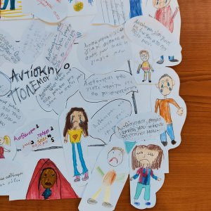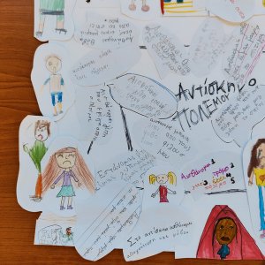 Μικρός Οδυσσέας - Little Odysseus Γ' Δημοτικό Σχολείο Ύψωνα Σύνδεσμος Γονέων Γ' Δημοτικού Ύψωνα Andreas Eliades Ξένος, ξένο χωριό, ξενοχωρίτης...μία συγκλονιστική σκηνή από το μοναδικό βιβλίο της Anna Kouppanou "Όταν μας άφησε η θάλασσα", Εκδόσεις Πατάκη-Patakis Publishers ήταν η αφορμή να δημιουργήσουμε το "αντίσκηνο του πολέμου". Πώς νομίζουν τα παιδιά πως ένιωσαν οι άνθρωποι αυτοί μέσα στο κτήμα με τις πορτοκαλιές; Πώς θα νιώθαν οι ίδιοι μέσα στο αντίσκηνο; Πώς μεταμορφώνονται τα συναισθήματα των προσφύγων σε μία εβδομάδα, ένα μήνα, ένα χρόνο, 10 χρόνια...πως βλέπουν την Κύπρο τα παιδιά 50 χρόνια μετά; Γιατί τα παιδιά έχουν με θλίψη περιτριγυρίσει το αντίσκηνο το οποίο έχει γεμίσει με ανθρώπινο καημό; Κι ο Αλι; Η Μπαχάρ...ακόμη περιμένουν ; Γιατί τα αντίσκηνα του πολέμου γεμίζουν δύσκολες σκέψεις; Ποιος τώρα θα μου εξηγήσει το αύριο; Έχω δικαίωμα άραγε;