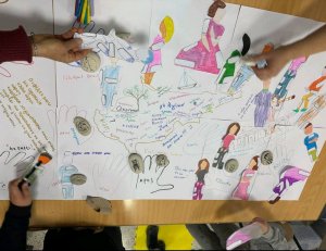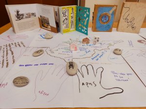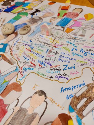 Μικρός Οδυσσέας - Little Odysseus Λανίτειο Λύκειο Λεμεσού G Pesinis Το Ακτιβιστικό πρόγραμμα του Africa Book Project ξεκίνησε από εμάς και μη σας φαίνεται παράξενο. Ξεκίνησε με το μοναδικό βιβλίο της Sandy Antoniou "Πόσα μέτρα είναι ο κόσμος μας"/ ΕΚΔΟΣΕΙΣ ΚΑΛΕΙΔΟΣΚΟΠΙΟ - KALEIDOSCOPE PUBLICATIONS , ο κόσμος της Κύπρου. Μέσα από τα μάτια του Αδαμάντιου Διαμαντή προσπαθήσαμε να εξερευνήσουμε μία Κύπρο που φεύγει, μία Κύπρο που αγάπησε, ήλπισε, αγωνίστηκε, υπέφερε, δημιούργησε, έζησε! Θα μου πείτε γιατί; Γιατί για να ενεργήσεις, να δραστηριοποιηθείς για τους άλλους για να γίνεις Activist και Artivist πρέπει πρώτα να καταλάβεις κάποια πράγματα για τον εαυτό σου, τις ρίζες σου. Πώς αλλιώς θα κατανοήσεις τους άλλους γύρω σου; Με την παιχνιδιάρικη λοιπόν αναζήτηση του ήρωα μας, ανακαλύπτουμε "τον κόσμο της υπαίθρου, τον κόσμο τον απλό, τον κόσμο που αγωνίστηκε". Κι εμείς, πόσο μοιάζουμε και πόσο διαφέρουμε από αυτόν τον κόσμο; Φτιάξαμε τις δικές μας φιγούρες λοιπόν, ο καθένας τον εαυτό του, προσπαθώντας να ακολουθήσουμε την τεχνική του καλλιτέχνη, γράφοντας παράλληλα μέσα στο χάρτη της Κύπρου λέξεις που χαρακτηρίζουν τη σχέση μας με το νησί. Δεν ξέρω αν ο κόσμος μας είναι μεγάλος ή μικρός πάντως σήμερα τον ένιωσα δυνατό, συναισθηματικό, δημιουργικό και ενωμένο. Οι φιγούρες πλημμύρισαν τον κόσμο μας και "χάθηκαν" μέσα στο χάρτη που είχαν φτιάξει τα παιδιά της Ειδικής, στις χούφτες του Άλεξ, της Αλέξιας, του Παναγιώτη, της Μαρίας, του Αχμετ, της Ελλάδας. Δε "σηκώνεται" αυτό το βάρος των ανθρώπων, γίνεται ένα μαζί μας και πετά πάνω από τον κόσμο. Ευχαριστούμε τις μοναδικές δασκάλες Maria Tsiakkas , Άννα Στυλιανού Diana Gavriel για όλη τη συνεργασία - μεγάλο μέρος προετοιμάστηκε στο σχολείο, Σύνδεσμος Γονέων Γ' Δημοτικού Ύψωνα Γ' Δημοτικό Σχολείο Ύψωνα για το μαγικό αποτέλεσμα. Ευχαριστώ τη διευθύντρια του Λανιτείου Λυκείου για τη φιλοξενία στη Βιβλιοθήκη του σχολείου και τον Γιώργο που έτρεξε για τα πάντα. Ευχαριστώ τον διευθυντή του Γ' Δημοτικού Ύψωνα Andreas Eliades που είναι πάντα δίπλα μας και σήμερα παρακολούθησε το συμβολικό μας δρώμενο. Ευχαριστώ επίσης τις δασκάλες, που έφεραν καινούργια, υπέροχα βιβλία στην Αγγλική γλώσσα, για τη Βιβλιοθήκη της Σιέρρα Λεόνε. Η αγαπημένη Σάντυ δεν μπόρεσε να είναι σήμερα μαζί μας όπως είχαμε σχεδιάσει. Τα παιδιά την περιμένουν στο σχολείο με πολλές ερωτήσεις και μπόλικη αγάπη για να της δείξουν το χάρτη της Κύπρου τους και να της δώσουν μία έκπληξη! Ευγνώμονες γι' αυτή τη μέρα! Ο κόσμος του Διαμαντή https://www.youtube.com/watch?v=Fp-DxfDbRjo
